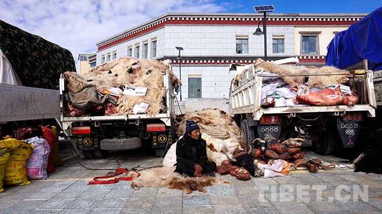 展銷(xiāo)會(huì)開(kāi)幕前一天,雙湖縣巴嶺鄉(xiāng)格拉俄?xiàng)澊迥撩衽偙愫屯閭凃?qū)車(chē)300余公里趕到了色尼區(qū)。雙湖縣巴嶺鄉(xiāng)的旺色達(dá)瓦告訴記者,此次巴嶺鄉(xiāng)組織了4輛大貨車(chē)、2輛農(nóng)用車(chē)、1輛皮卡車(chē)裝載了價(jià)值40多萬(wàn)元的牛羊肉參加展銷(xiāo)會(huì)。