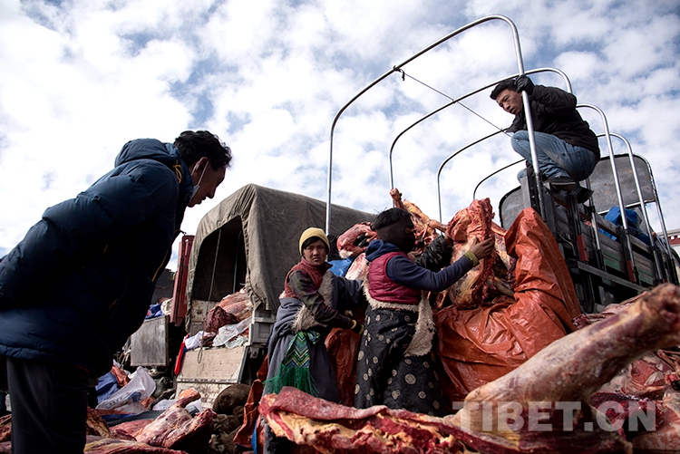 中國(guó)西藏網(wǎng)訊 12月的藏北高原,即使太陽(yáng)高懸,氣溫已是零下幾度甚至十幾度。在海拔4500米的西藏自治區(qū)那曲市色尼區(qū)物流園區(qū)農(nóng)貿(mào)市場(chǎng),天寒地凍并未阻止人們外出,這里依然車(chē)水馬龍、人頭攢動(dòng)。