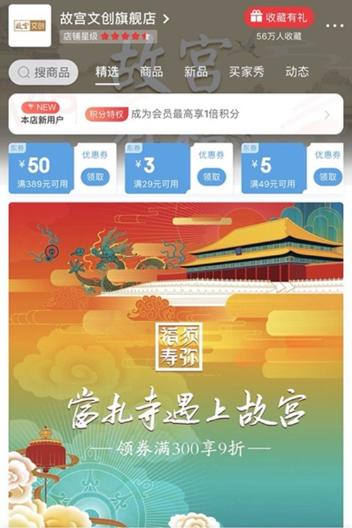 同時,故宮文創(chuàng)旗艦店與京東聯(lián)合打造的線上展覽,不僅同步上線展覽中的文創(chuàng)產(chǎn)品,讓不能前往現(xiàn)場的消費者也能體驗逛展樂趣,還推出多重優(yōu)惠帶來驚喜福利。