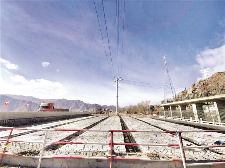 12月14日,西藏拉薩東環(huán)線項目橋梁梁板架設(shè)工作已全部完成。圖為施工現(xiàn)場。 記者 貢嘎來松 攝