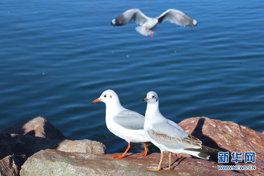 湖面上,成群結(jié)隊的棕頭鷗