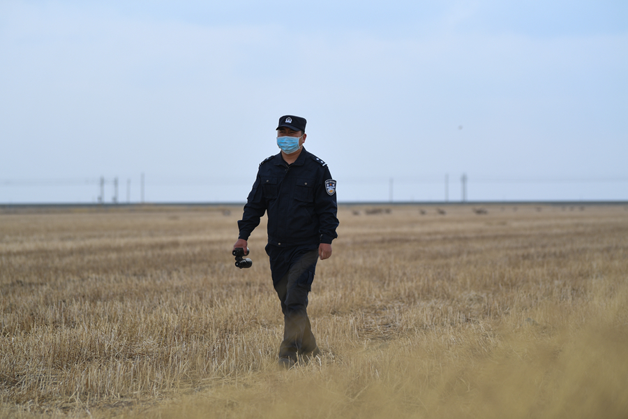 11月20日,秦輝武在特護區(qū)內(nèi)巡查。新華網(wǎng) 潘彬彬攝