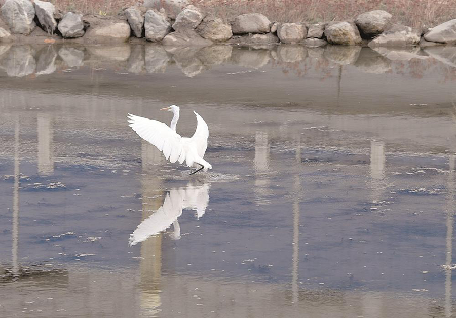“咕、咕、咕……”11月25日13時許,走進西寧南川河與湟水河交匯處,在清澈見底的河道里,一只大白鷺正悠然自得地來回踱步,獨自覓食,不時發(fā)出陣陣歡快的叫聲。