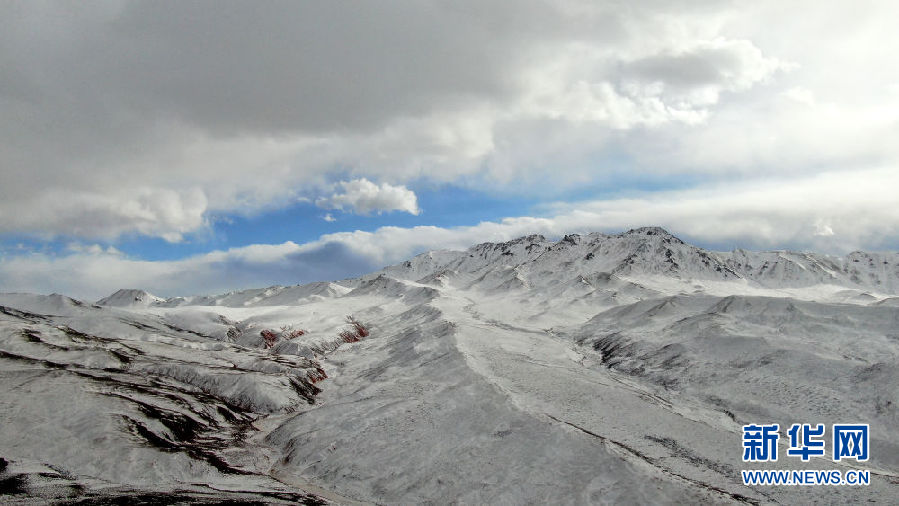 這是青海省祁連縣境內(nèi)的一處雪山(12月10日攝,無(wú)人機(jī)照片)。新華社記者 張宏祥 攝