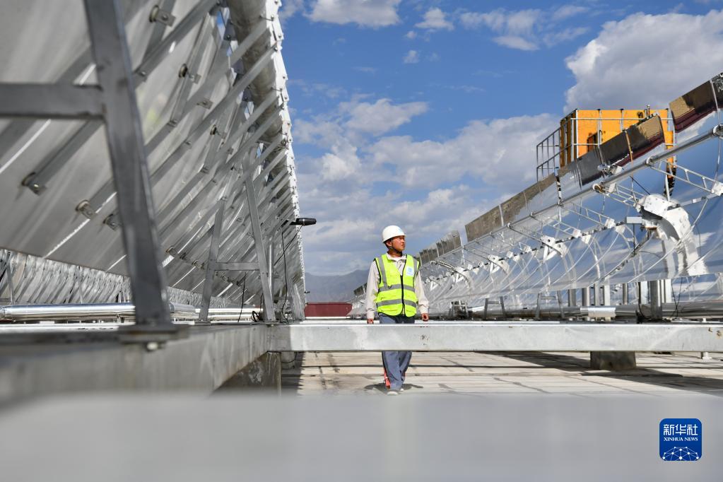 中建一局工作人員檢查高散輻射主動(dòng)式太陽能供暖設(shè)備(7月6日攝)。新華社記者 晉美多吉 攝