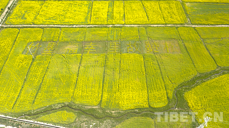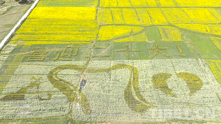 值得一提的是,在扎西崗鄉(xiāng)主會(huì)場(chǎng),當(dāng)?shù)貙⒒牡刂匦麻_(kāi)墾,安排種植了油菜花大地景觀。不同品種、不同顏色的油菜花海為背景的種植,從空中俯瞰形成了“喜迎二十大”“松贊故里 幸福墨竹”字樣和松贊干布、文成公主、哈達(dá)、愛(ài)心等圖樣,表達(dá)當(dāng)?shù)厝罕娤灿h的二十大的美好祝福。