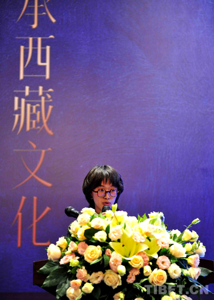 圖為第九屆“地球第三極·西藏禮物”旅游文創(chuàng)商品大賽頒獎儀式現(xiàn)場銀獎獲得者——西藏三界文化發(fā)展有限公司的格桑卓瑪作為獲獎代表進(jìn)行發(fā)言攝影:拉姆