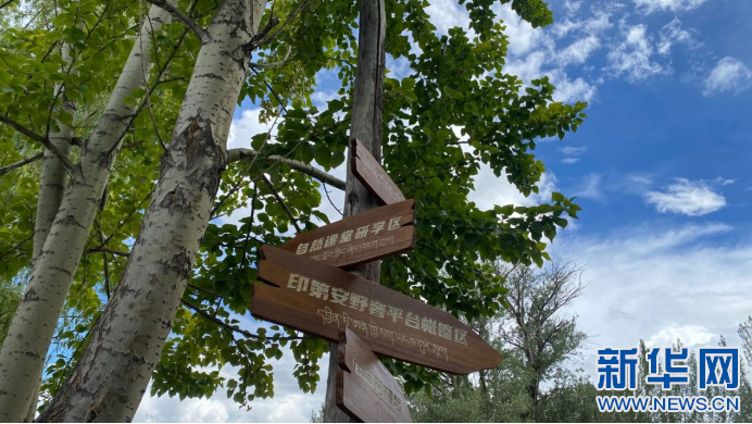 圖為薩己林野奢營(yíng)地路標(biāo)(8月2號(hào)攝)。新華網(wǎng)發(fā) 丹增卓嘎(實(shí)習(xí)生)攝。