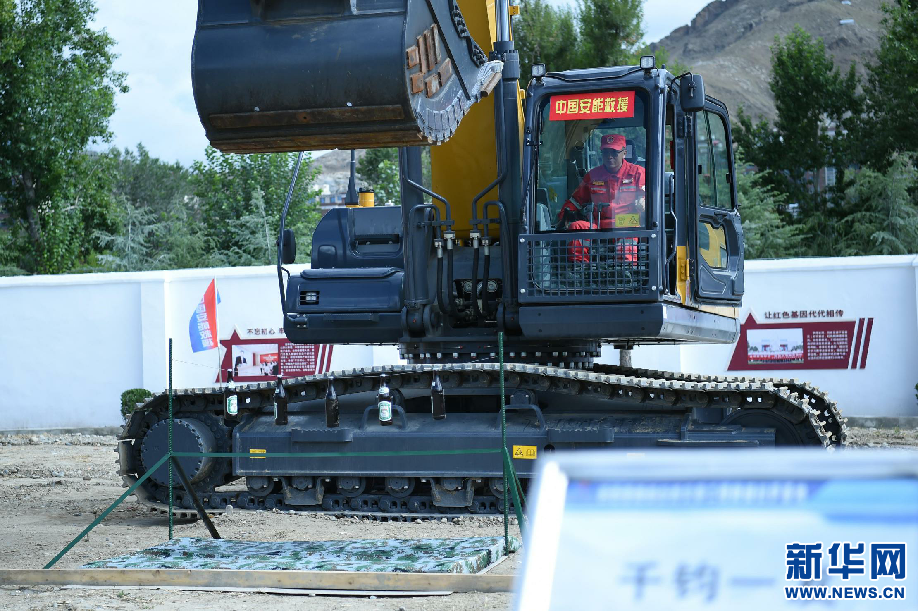 8月5日,工作人員在拉薩基地演示應(yīng)急搶險動態(tài)精準(zhǔn)科目—“挖掘機(jī)寫字”。新華網(wǎng) 旦增努布 攝