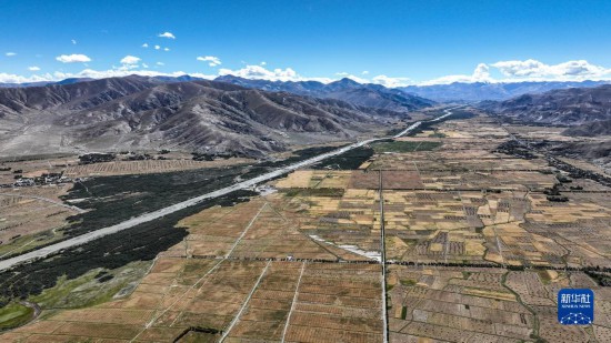 西藏日喀則江孜段富饒的農田(9月19日攝,無人機照片)。者 晉美多吉 攝