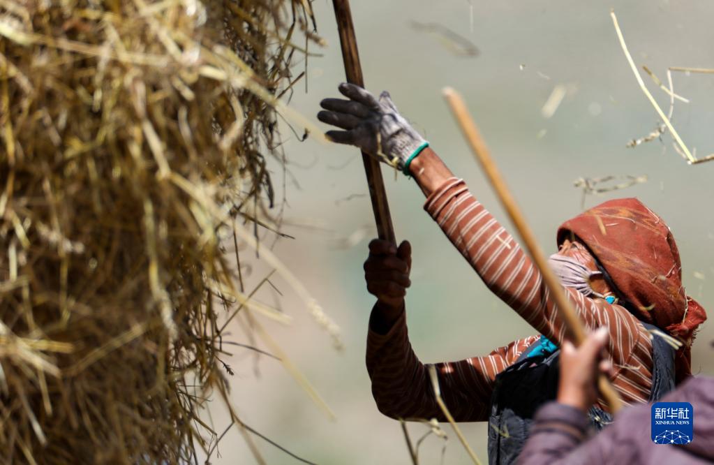 9月21日,拉薩市林周縣江熱夏鄉(xiāng)江夏村的村民在揚場。新華社記者 覺果 攝