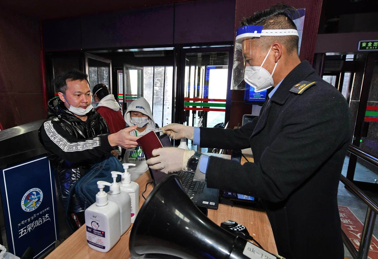 圖為旅客正在進站。記者 唐斌 王敏 旦增蘭澤 攝