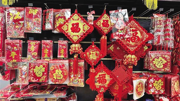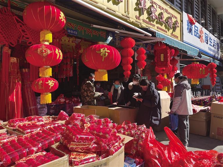 春節(jié)臨近,拉薩街頭巷尾年味兒漸濃,各個街道也比平時更加熱鬧?;鸺t的春聯(lián)、精致的福字貼畫、漂亮的燈籠和各種具有“兔元素”的飾品,無不在述說著新春的到來。放眼望去,處處洋溢著喜慶祥和的節(jié)日氛圍。