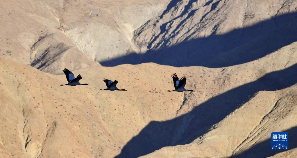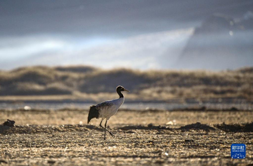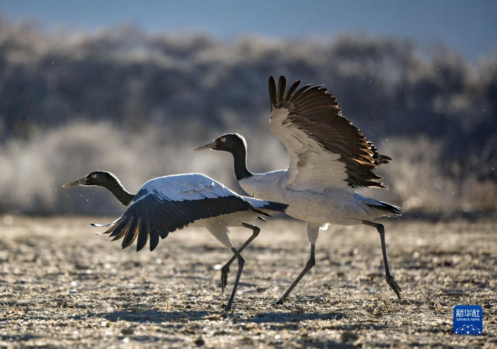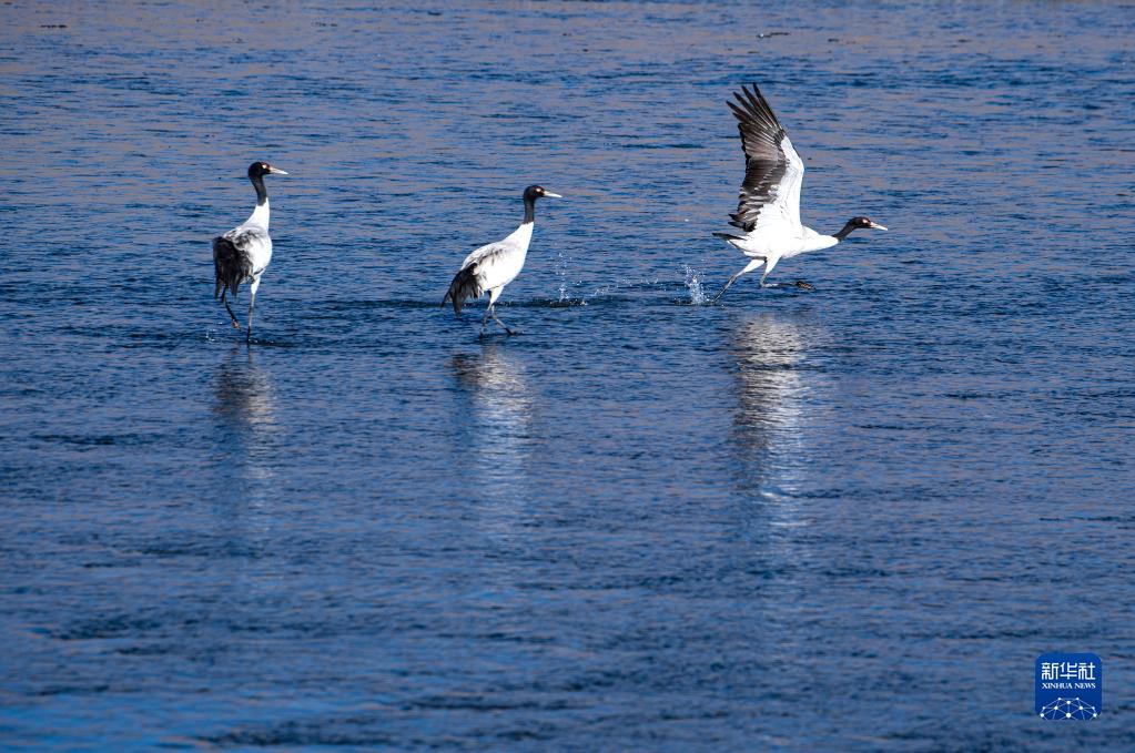 在西藏雅魯藏布江中游河谷黑頸鶴國(guó)家級(jí)自然保護(hù)區(qū)日喀則市拉孜縣越冬的黑頸鶴(1月19日攝)。新華社記者 晉美多吉 攝