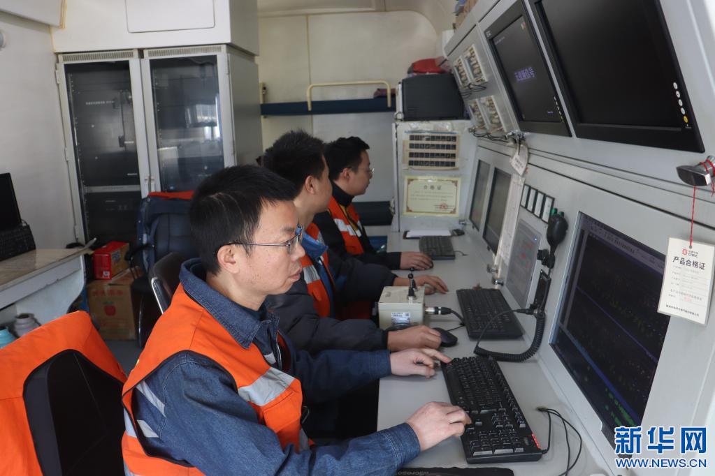 1月28日,探傷作業(yè)人員在探傷車里工作。(馬生明 攝)