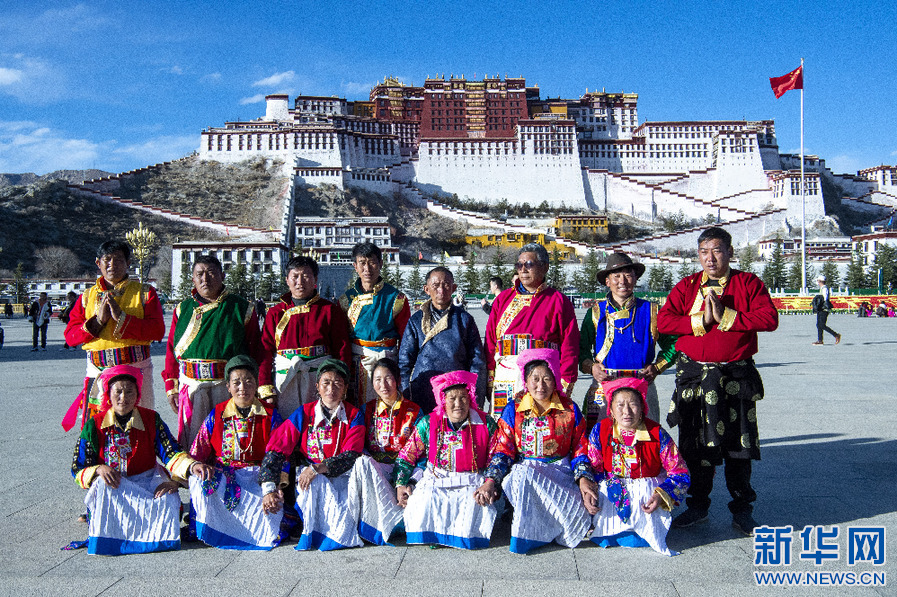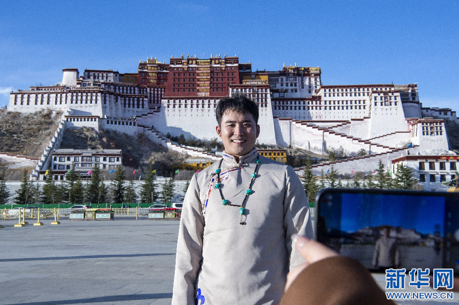來自云南的游客在布達(dá)拉宮廣場(chǎng)拍照留念(1月30日攝)。新華網(wǎng) 旦增努布 攝