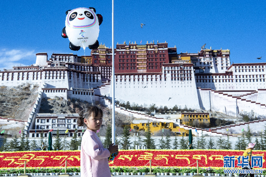 一名小女孩在布達(dá)拉宮廣場(chǎng)拍照留念(1月30日攝)。新華網(wǎng) 旦增努布 攝