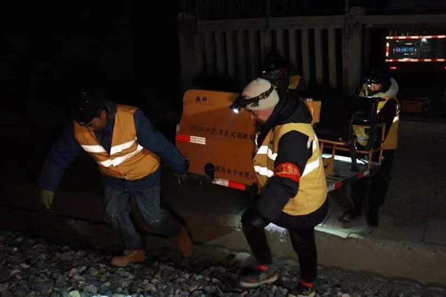 “大家?guī)Ш霉ぞ卟牧希瑴?zhǔn)備出發(fā)?!?2時(shí)整,隨著作業(yè)負(fù)責(zé)人探傷工區(qū)工長(zhǎng)羅布一聲令下,呼嘯的寒風(fēng)中,黃色的“迷你敞篷車”緩緩啟動(dòng),載著4名職工,開始了當(dāng)晚對(duì)拉林鐵路20多公里線路的探傷檢查任務(wù)。