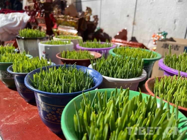 圖為年貨市場里的青稞苗 攝影:德吉卓瑪