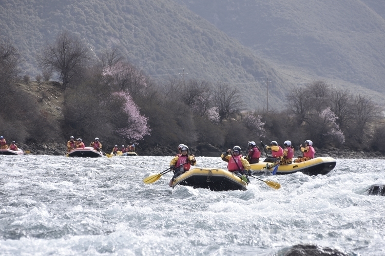 圖為4月16日,7公里激流漂流筏追逐賽比賽現(xiàn)場 攝影:次旦拉姆