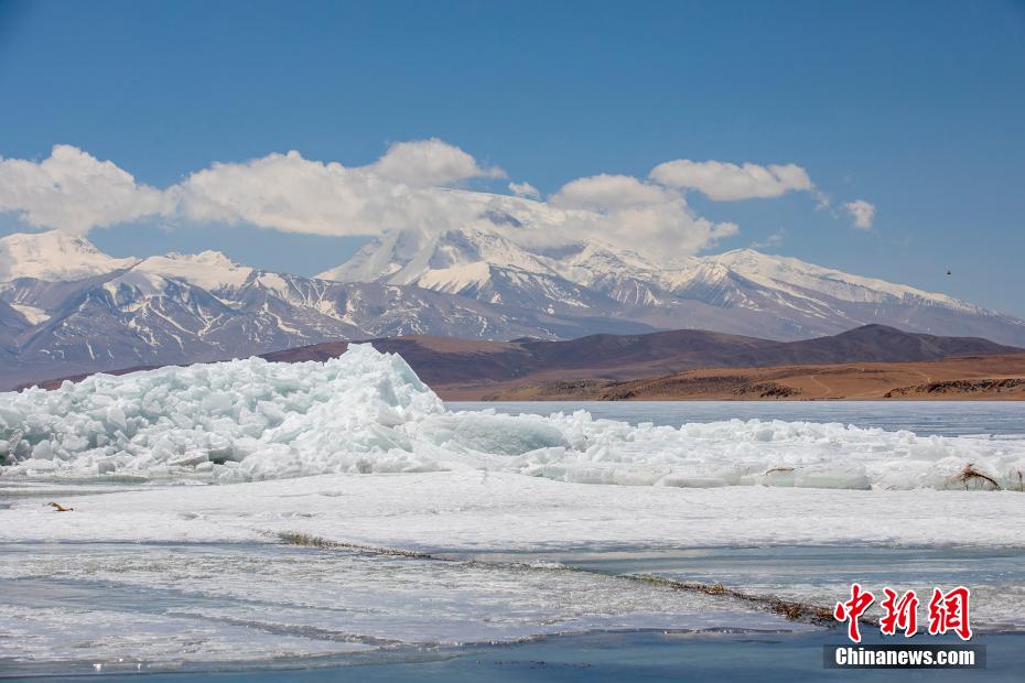 4月21日,入春后,西藏瑪旁雍錯(cuò)進(jìn)入冰融期?,斉杂哄e(cuò)位于藏西阿里地區(qū)普蘭縣境內(nèi),是世界上海拔最高的淡水湖之一,面積412平方公里,與納木錯(cuò)、羊卓雍錯(cuò)并稱為西藏三大“圣湖”。圖為瑪旁雍錯(cuò)冰雪消融。