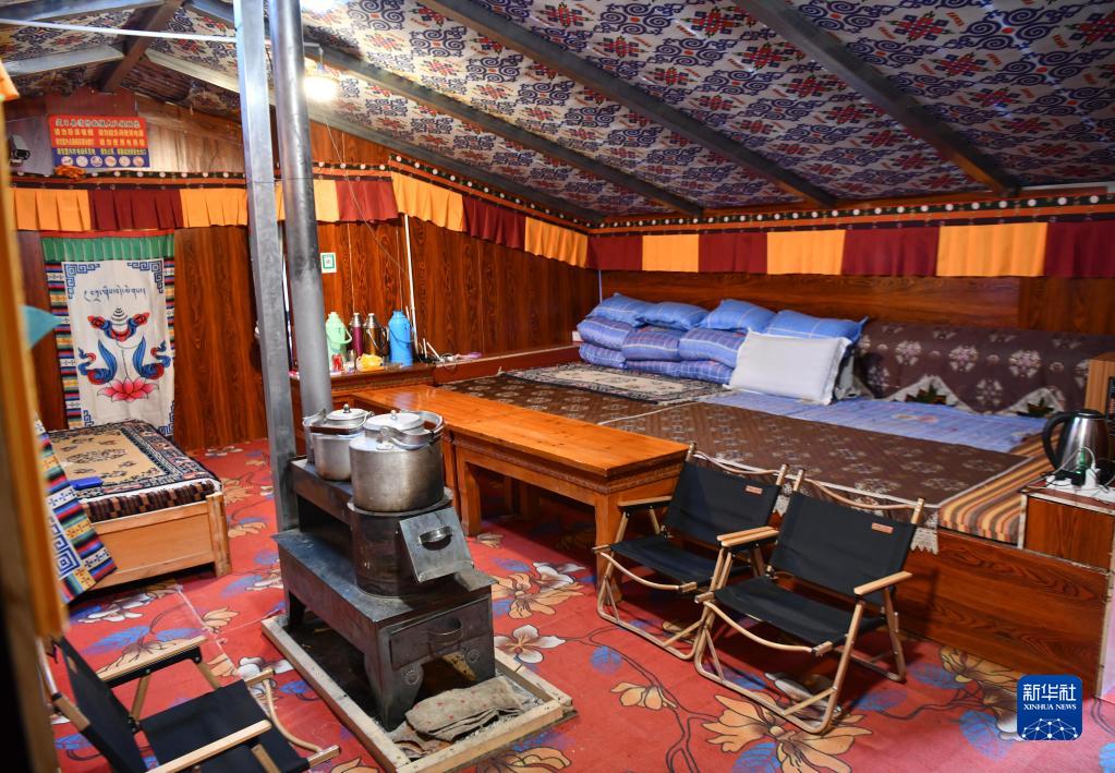 這是珠峰游客大本營(yíng)帳篷旅館內(nèi)景(5月13日攝)。新華社記者 晉美多吉 攝