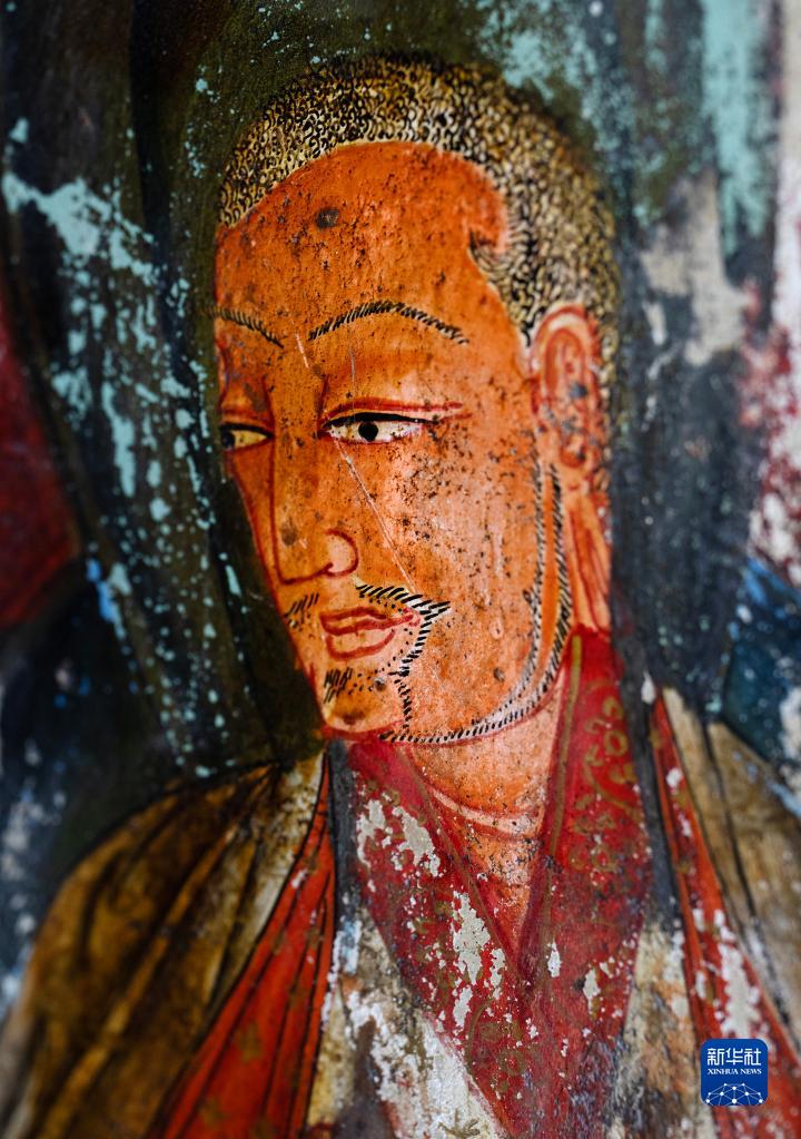 這是5月26日拍攝的皮央石窟壁畫中的人物造型。新華社記者 費(fèi)茂華 攝