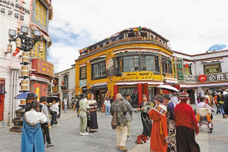 在這里,有林芝工布公園經(jīng)久不息的鍋莊舞、阿里獅泉河兩岸休閑散步的市民、山南昌珠廣場夜間文化和旅游消費集聚區(qū)的喧囂……這里匯聚著高原360多萬各族群眾的鮮活生活之美。
