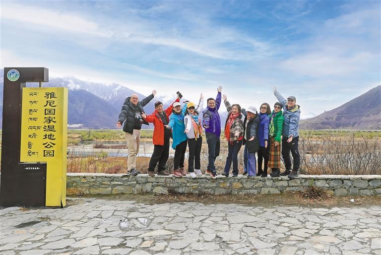 游客在林芝市雅尼國家濕地公園拍照留影。