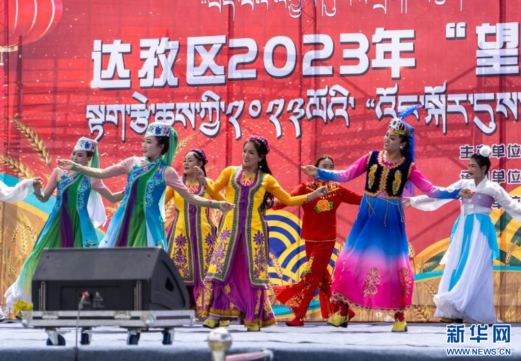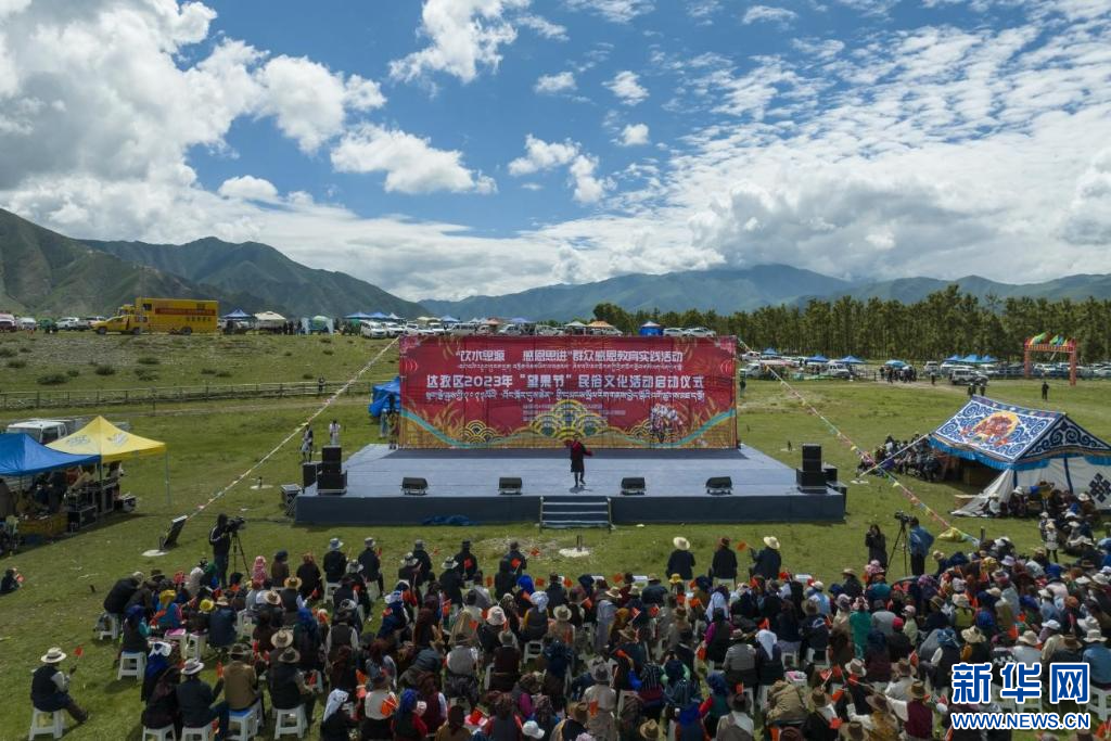 圖為達(dá)孜區(qū)2023年“望果節(jié)”民俗文化活動啟動儀式現(xiàn)場(7月28日攝)。新華網(wǎng) 旦增努布 攝
