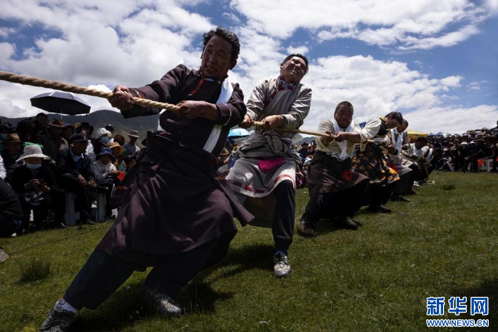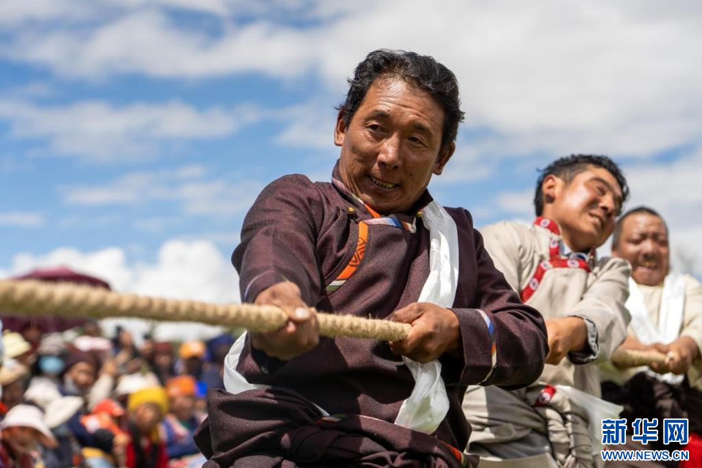 圖為達(dá)孜“望果節(jié)”拔河比賽現(xiàn)場(7月28日攝)。新華網(wǎng)發(fā) 司秦菱 攝