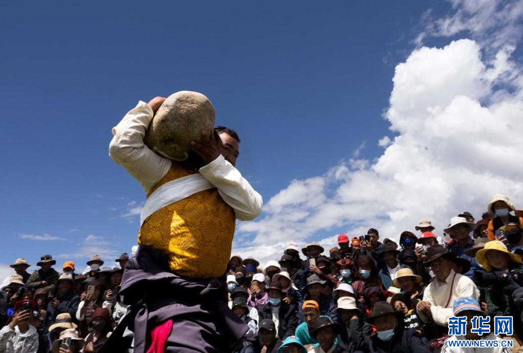 圖為達(dá)孜“望果節(jié)”抱石頭比賽現(xiàn)場(7月28日攝)。新華網(wǎng) 旦增努布 攝