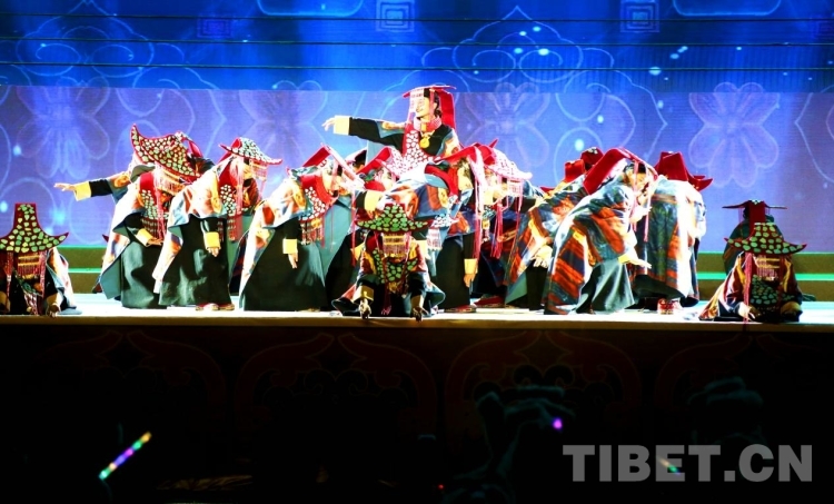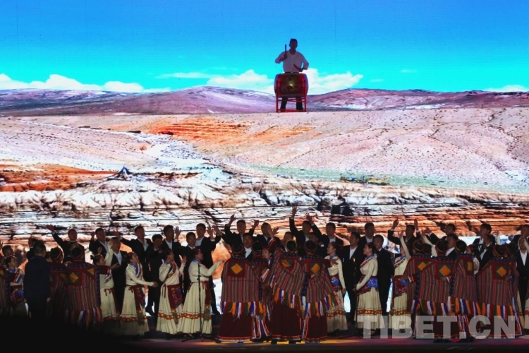 隨后盛大的開幕式文藝演出如期而至。演出共分為《悠遠(yuǎn)古韻》《詩(shī)意微芒》《如炬經(jīng)典》《輝煌盛世》四個(gè)篇章。《悠遠(yuǎn)古韻》篇章為大型情景表演,結(jié)合古格壁畫為開場(chǎng)表演,展現(xiàn)出阿里人民群眾的精神面貌和獨(dú)特的阿里神韻?!对?shī)意微芒》匯集阿里地區(qū)諸多極具代表性的國(guó)家級(jí)非物質(zhì)文化遺產(chǎn)節(jié)目,展現(xiàn)阿里地區(qū)悠久燦爛的古代文明遺存?!度缇娼?jīng)典》篇章通過(guò)不同舞蹈,展現(xiàn)阿里獨(dú)具特色的民間歌舞文化。《盛世弦歌》則展現(xiàn)了阿里地區(qū)以熱情昂揚(yáng)的姿態(tài)在全力以赴推動(dòng)建設(shè)雪域高原“西部明珠”中取得的一系列可喜的成績(jī)?! ?/p>