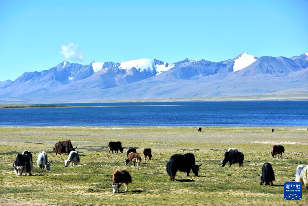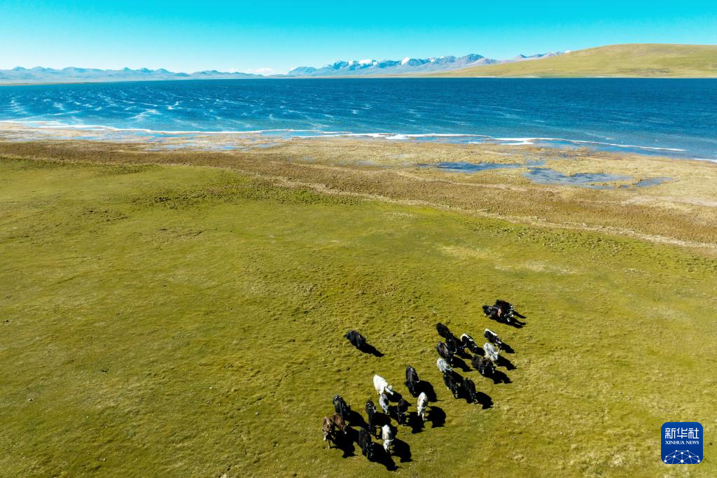 打加錯(cuò)湖畔的牛群(8月30日攝)。新華社記者 劉文博 攝