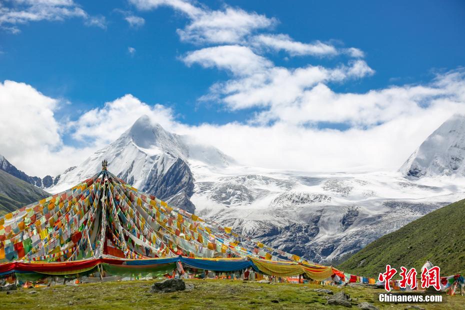 8月27日,記者在西藏那曲市比如縣拍攝到薩普雪山美景。薩普因雪豹而得名,位于比如縣羊秀鄉(xiāng)普宗溝內,全稱薩普貢拉嘎布。主峰色浦崗日海拔6996米,是喜馬拉雅山主峰北部的念青唐古拉山脈東段的最高峰。在薩普山腳有一個清澈如鏡的湖,全名堆烔薩錯查仁,又稱薩木措,是由雪山千年冰雪融化所形成,自山腳延伸,分為兩部分,靠近山腳下的為冰川湖泊,終年不化;另一部分為主湖,湖水碧綠,湖內魚兒成群。圖為薩普雪山景色。