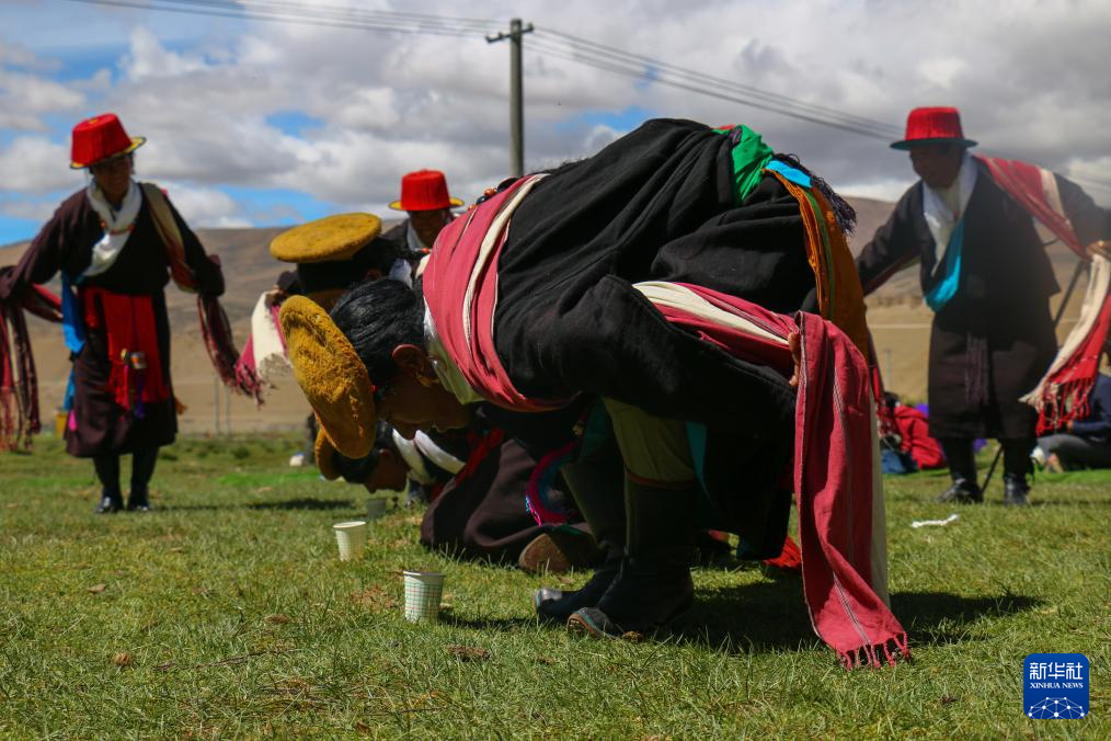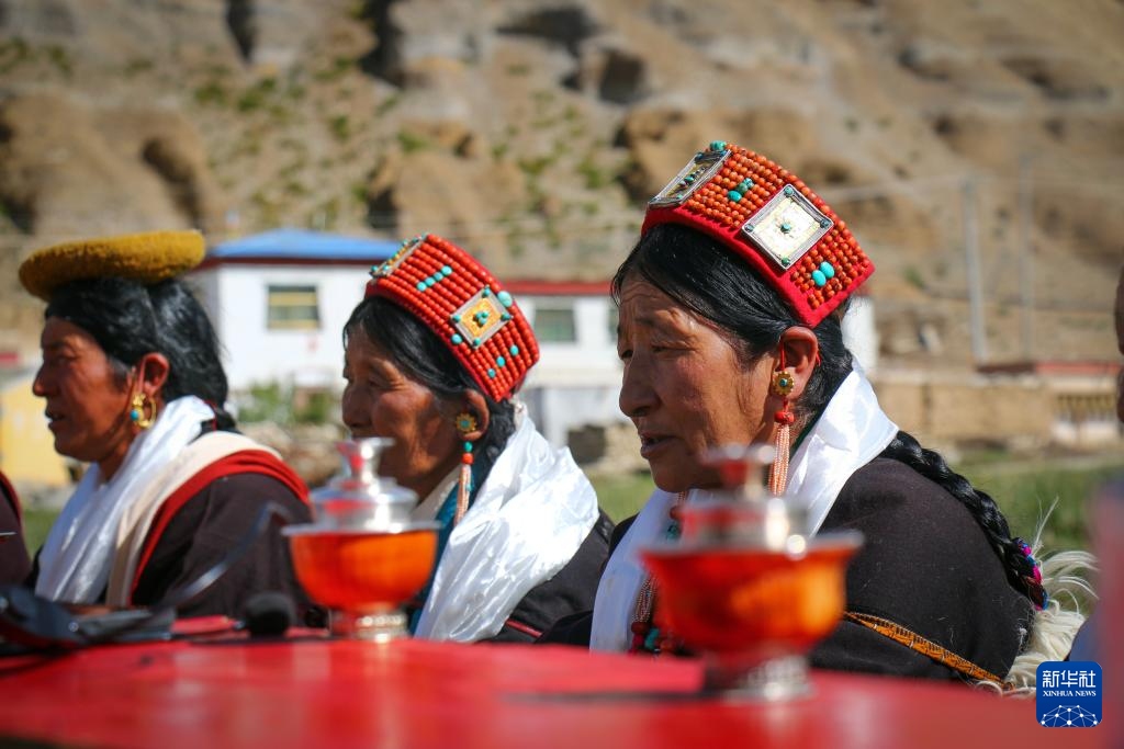 仁貢村村民正在表演敬酒歌“雅爾松吧”(8月11日攝)。新華社記者 曹檳 攝