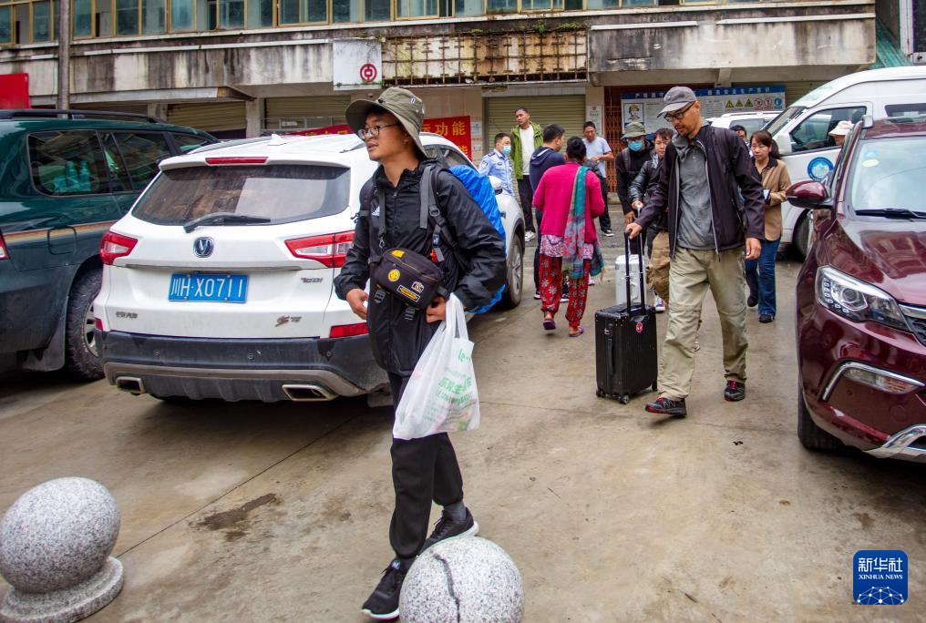 幾名游客準(zhǔn)備從樟木口岸出境到尼泊爾旅游(9月9日攝)。新華社記者 姜帆 攝??