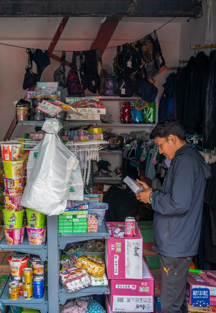 尼泊爾邊民在樟木口岸互市貿(mào)易市場(chǎng)選購(gòu)商品(9月9日攝)。新華社記者 姜帆 攝??