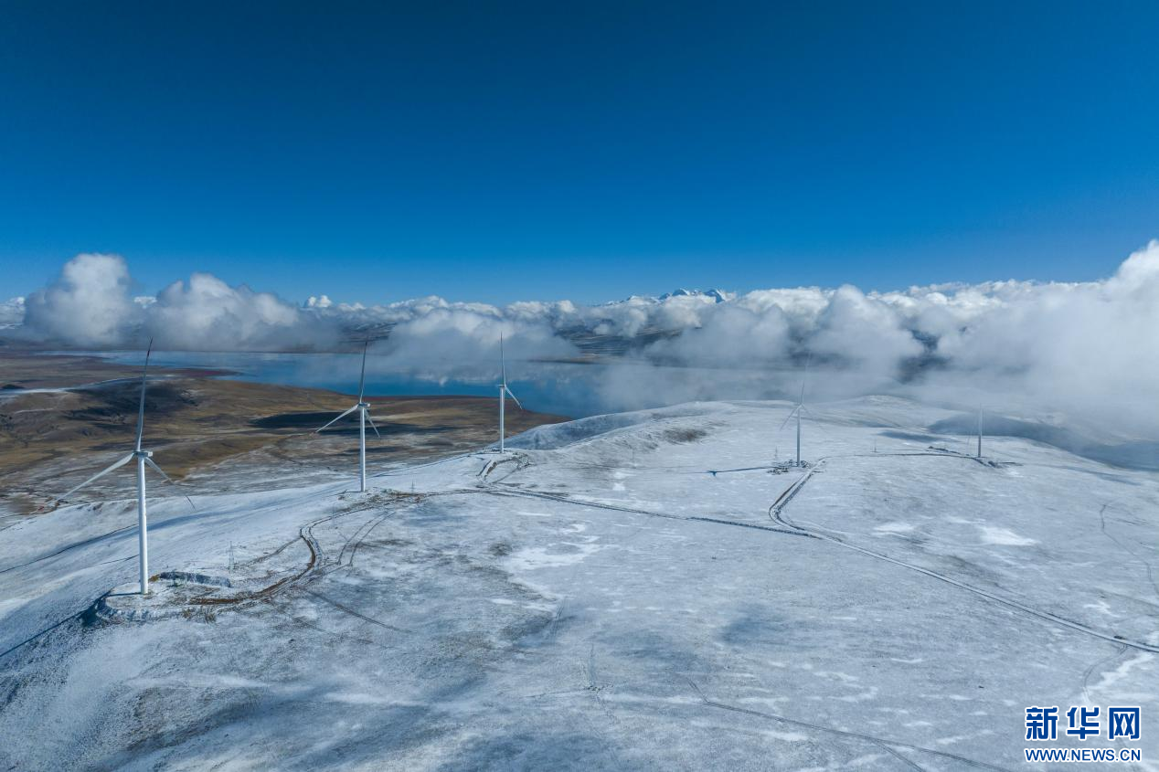 10月13日拍攝的西藏措美哲古風電項目一處風電機組(無人機照片)。新華網(wǎng) 旦增努布 攝