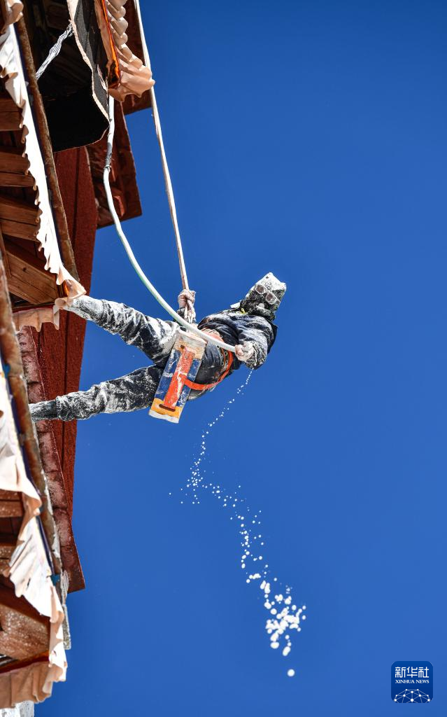 近日,西藏布達拉宮開始進行粉刷維護工作。為使經(jīng)過一年日曬雨淋的紅墻白壁保持鮮亮光彩,每年秋冬交替時節(jié),布達拉宮外墻都要進行粉刷“美容”。