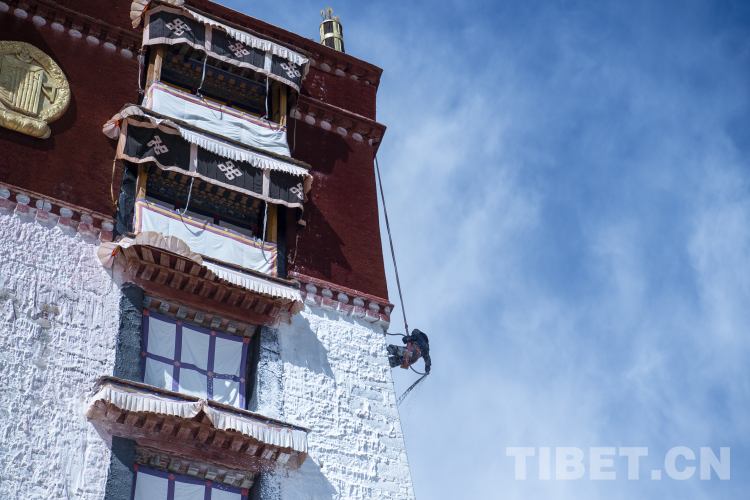 每年藏歷9月,布達(dá)拉宮便開啟一年一度的墻體粉刷工程,這也是布達(dá)拉宮例行的“換新裝”。按照慣例,每季粉刷將在藏歷9月22日“神降節(jié)”前完成。