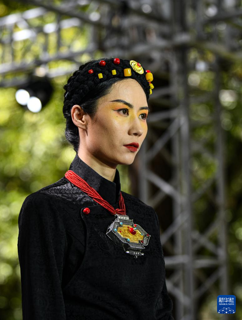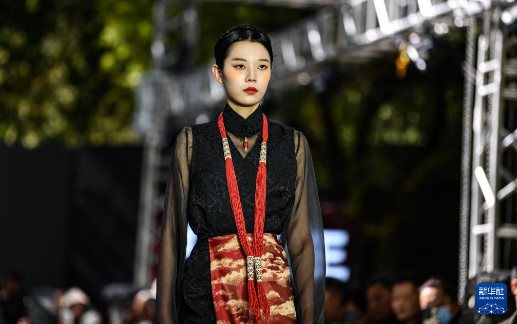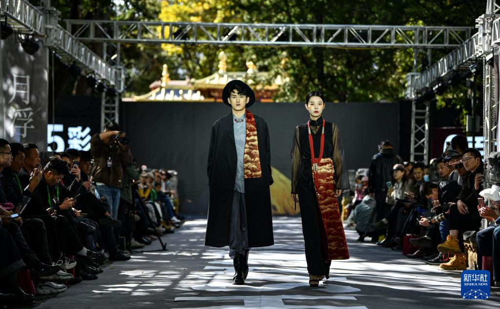 10月21日,模特在時裝發(fā)布會上展示創(chuàng)新藏裝。新華社記者 晉美多吉 攝