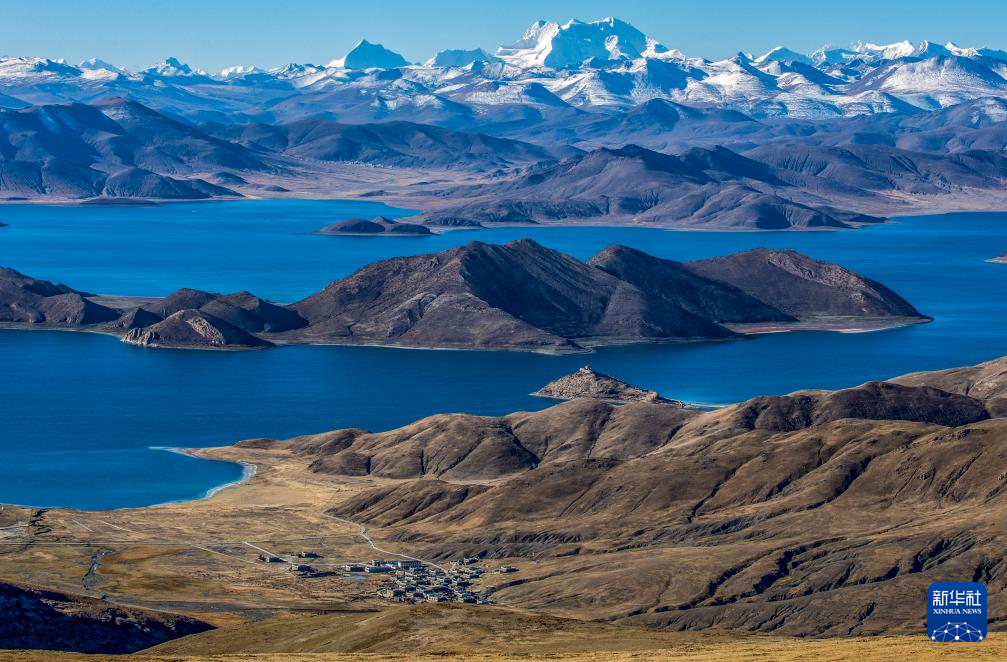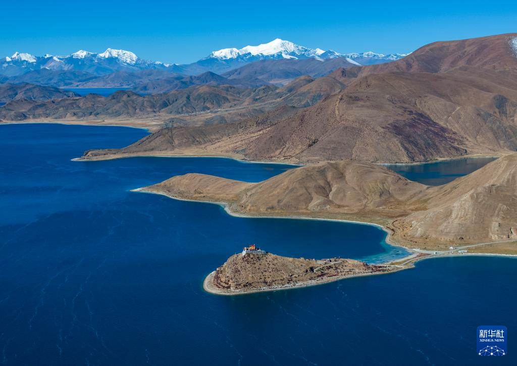 這是10月25日拍攝的羊卓雍錯(cuò)和日托寺。新華社記者 姜帆 攝 ??