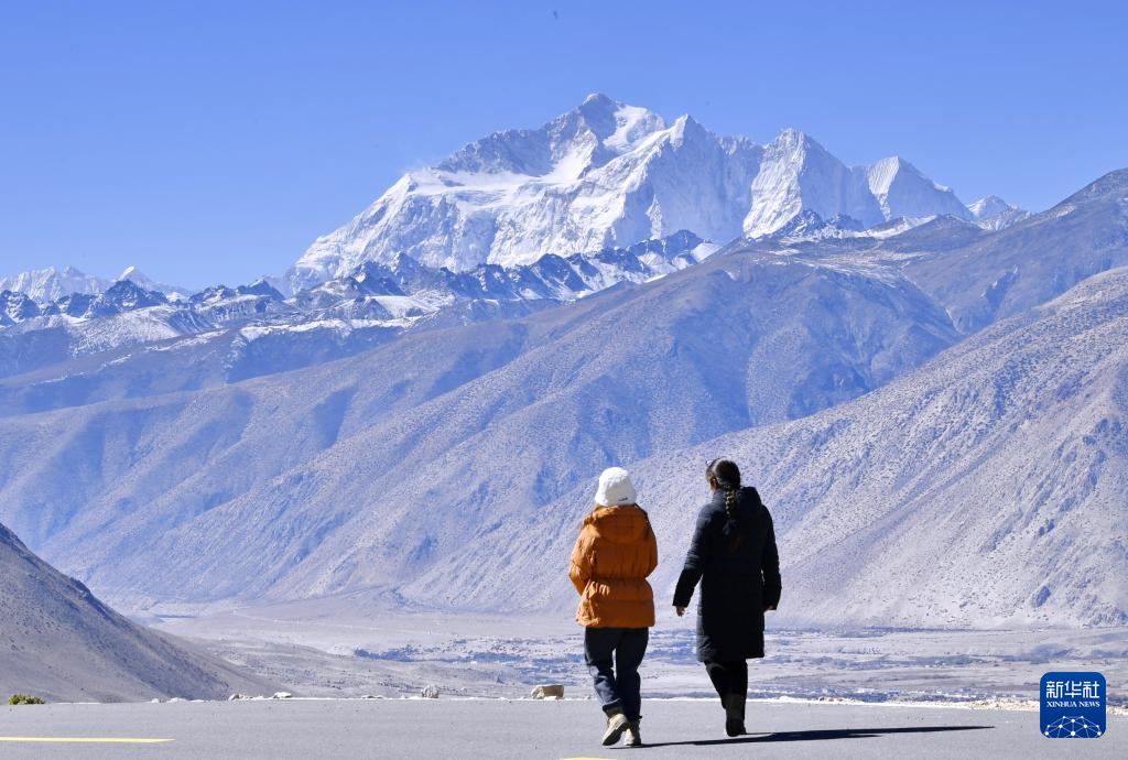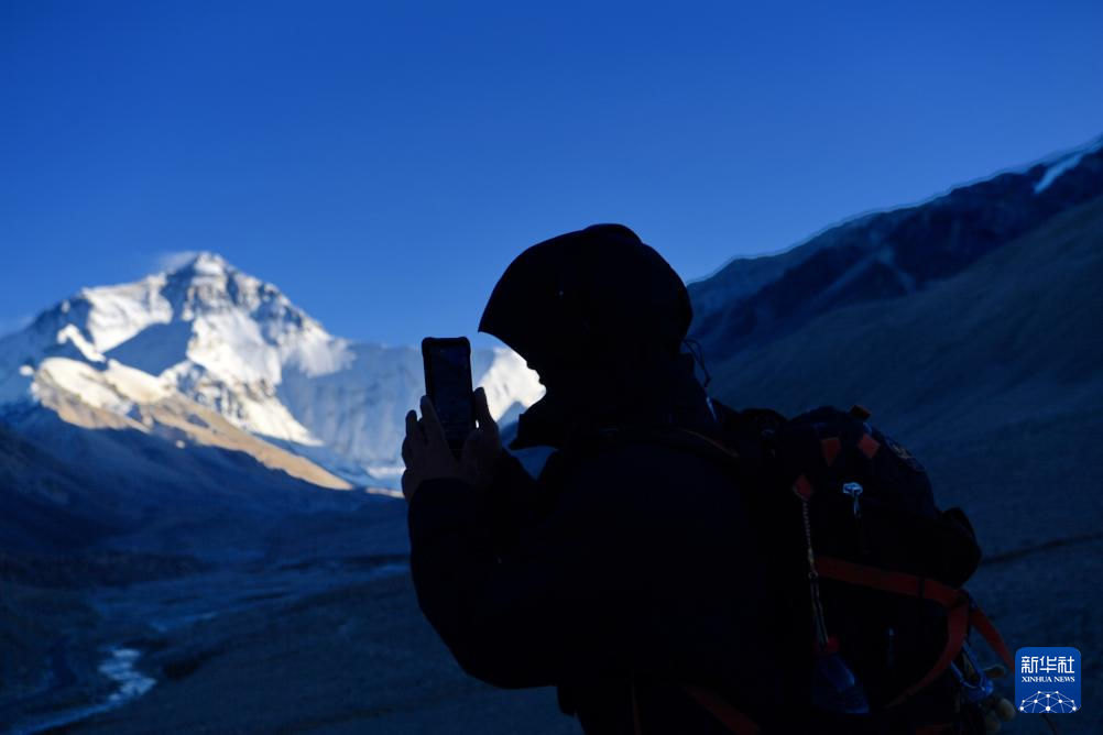 深秋,西藏日喀則市定日縣天高氣爽,游客前來觀賞世界最高峰——珠穆朗瑪峰。 ??