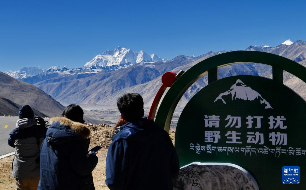 游客在珠穆朗瑪國(guó)家公園欣賞珠峰景色(10月27日攝)。新華社記者 張汝鋒 攝 ??