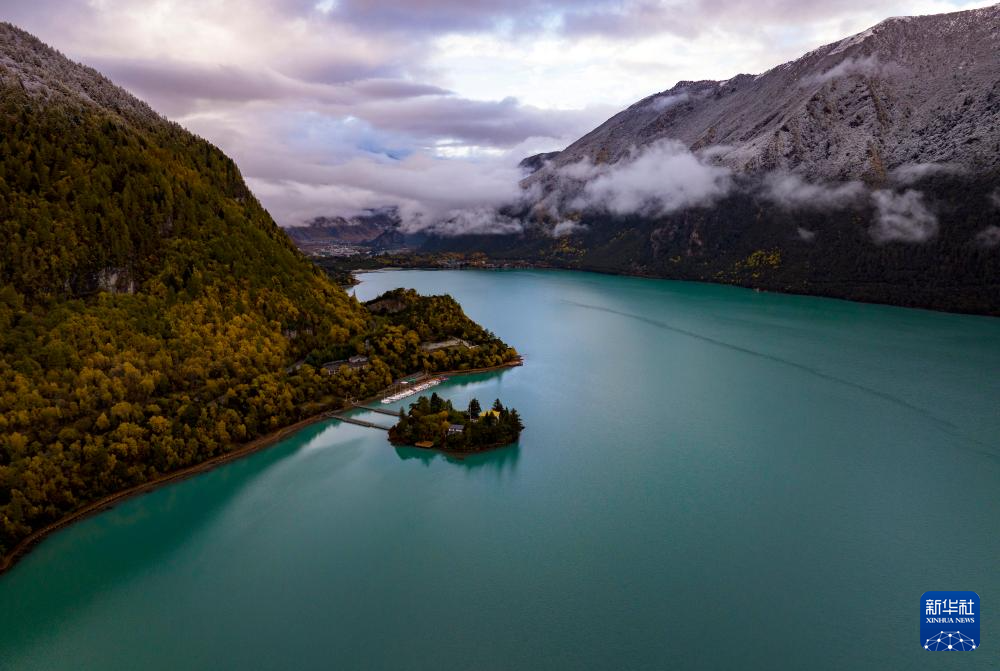 這是在林芝工布江達(dá)縣拍攝的巴松錯(無人機(jī)照片,10月28日攝)。新華社記者 姜帆 攝
