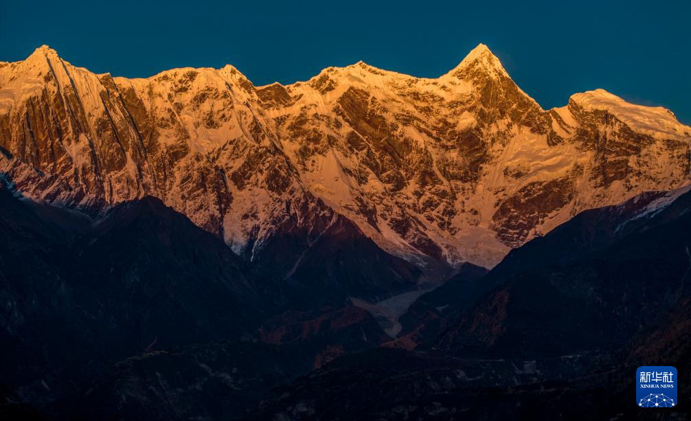 這是11月13日在索松村拍攝的日落時分的南迦巴瓦峰。新華社記者 姜帆 攝