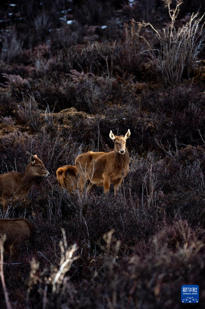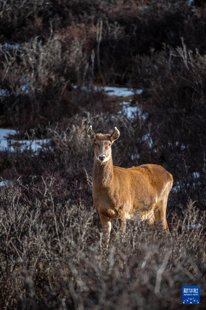 這是在西藏山南市桑日縣拍攝的馬鹿(1月14日攝)。新華社記者 旦增尼瑪曲珠 攝