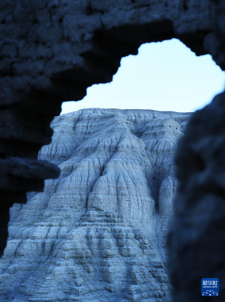這是透過古格王國遺址殘垣拍攝的土林(1月30日攝)。新華社記者 關(guān)明輝 攝