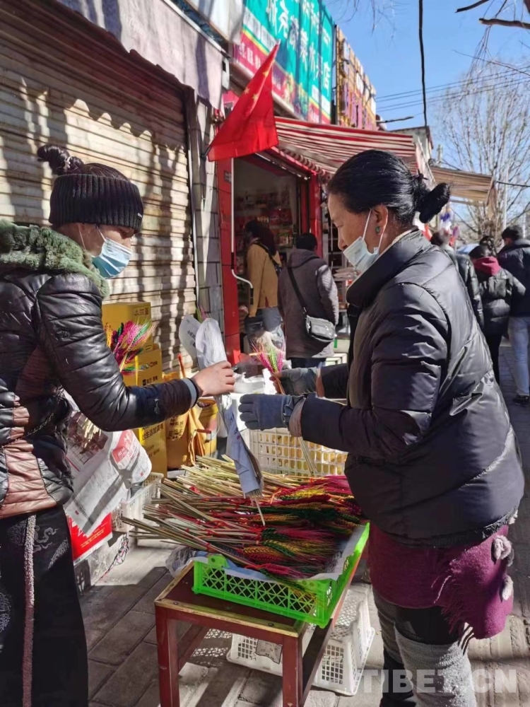 圖為藏歷新年之前顧客在購(gòu)買(mǎi)五彩青稞穗 攝影:巴桑